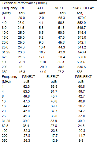 • ISO/IEC 11801 Ed. 2.0 (Class EI)